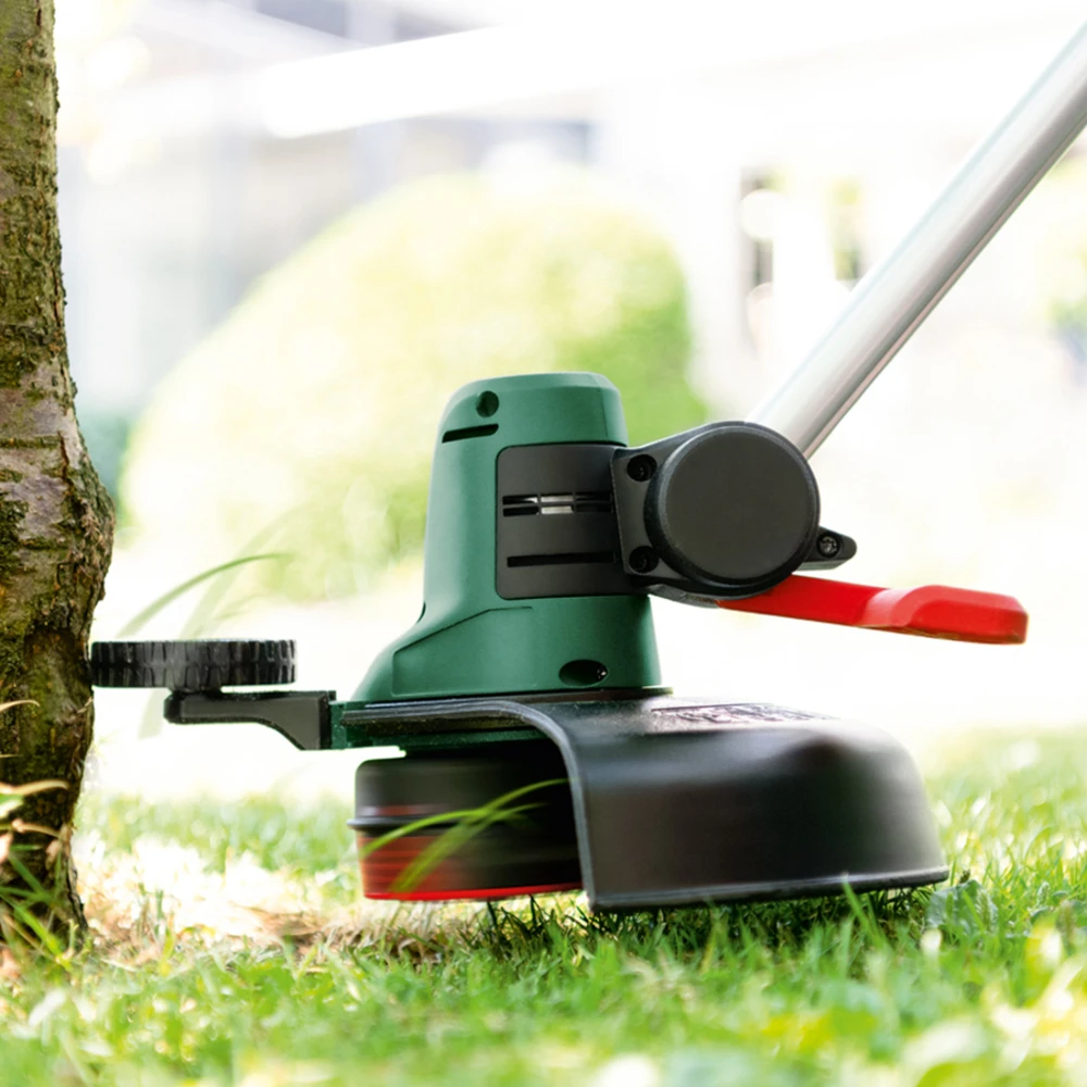 Le coupe-bordures électrique sans fil UniversalGrassCut 18V-26 est idéal pour donner un bain de jouvence à votre jardin. Vous pourrez dompter et couper les herbes folles qui s’y développent pour obtenir des bordures végétalisées nettes et soignées. Son design a été intelligemment étudié par Bosch pour faciliter vos interventions de jardinage grâce à des outils respectant votre posture naturelle de travail. Ce coupe bordure ne manque pas d’atouts pour vous séduire : Il fonctionne sur une batterie 18V compatible avec tous les outils 18V de la gamme Alliance Power for all Bosch. Son manche ergonomique en V permet de toujours travailler confortablement. Il dispose également d’une fonction IntelliFeed qui gère automatiquement l’avance de son fil de coupe pour un travail sans interruption. Sa tête polyvalente est inclinable et réglable en dresse-bordures sans que vous n’ayez besoin de vous baisser. Il dispose enfin de l’autonomie suffisante pour couper les bordures de huit terrains de tennis avec une seule charge de batterie ! Votre coupe-bordure est commercialisé avec un chargeur et une batterie PBA Lithium-ion 18 V de capacité 2,5 Ah Bosch de la gamme Alliance Power for all. Vous pouvez partager l’usage de la batterie de votre coupe-bordures avec tous les outils Bosch de cette gamme Alliance Power for all. IL faut 1 heure seulement pour obtenir une charge complète de votre batterie. Votre coupe-bordure vous offre un diamètre de coupe de 26 cm. L’épaisseur de son fil de coupe est de 1,6 mm. Il ne pèse que 2,7 kg ce qui vous garanti de travailler confortablement longtemps sans générer de fatigue musculaire prématurée. Coupe-bordures électrique sans fil UniversalGrassCut 18V-26 commercialisé avec batterie PBA Lithium-ion 18 V de capacité 2,5 Ah.