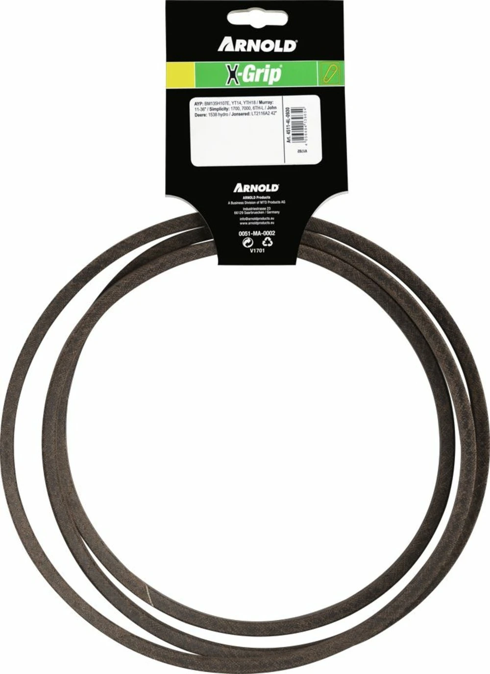 courroie arnold x-grip sont spécialement conçues pour autoportée et tracteur de jardin.les courroies x-grip ont une haute résistance à l’huile, à la chaleur et aux fissures. Sa composition en fibre et sa couche de kevlar lui confère une grande résistance à la traction, sans torsion, et aux chocs. L’emballage de la courroie donne une haute résistance à l’usure et réduit le glissement à l’embrayage. Les courroies arnold x-grip résiste à un haut niveau de torsion.
