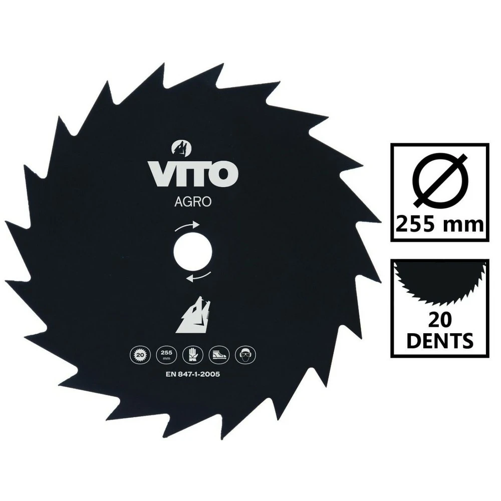 cette lame de coupe pour débroussailleuse possède 20 dents pour un diamètre de 255mm.alesage 25.4