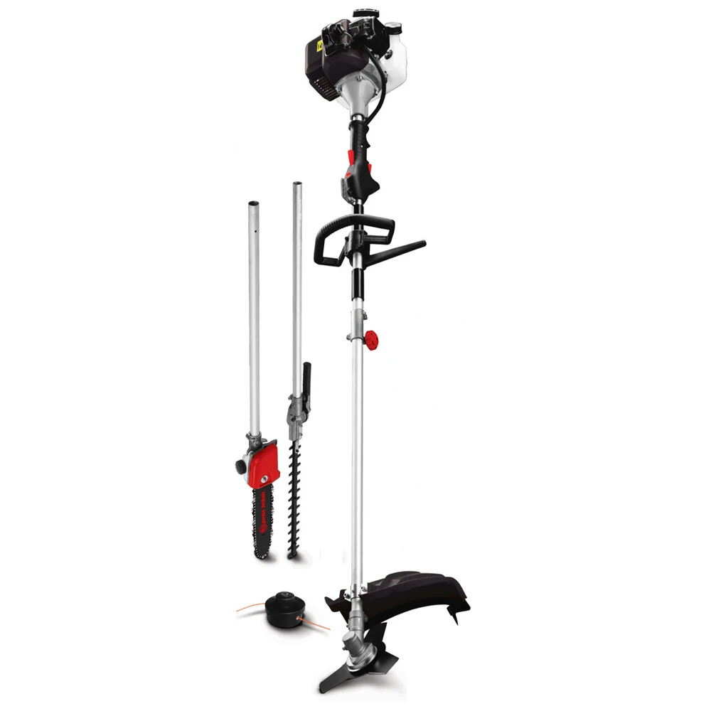 Véritable outil 4 en 1, cette débroussailleuse vous rendra de nombreux services lors de vos travaux de jardinage. Doté d’un moteur thermique 2 temps de 33cc, cet outil multifonction peut adopter différents rôles :