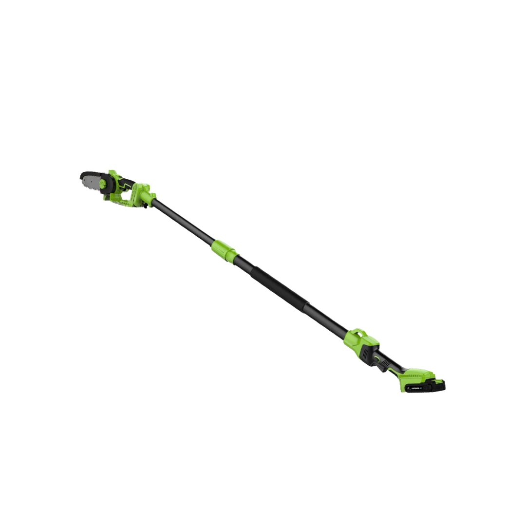 pack : tronçonneuse, batterie, bras télescopique, tenseur de chaîne, chargeur inclus