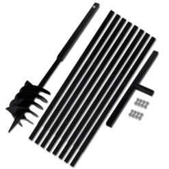 - la livraison inclut une tarière de sol, un manche, 8 tubes d’extension et quelques vis.